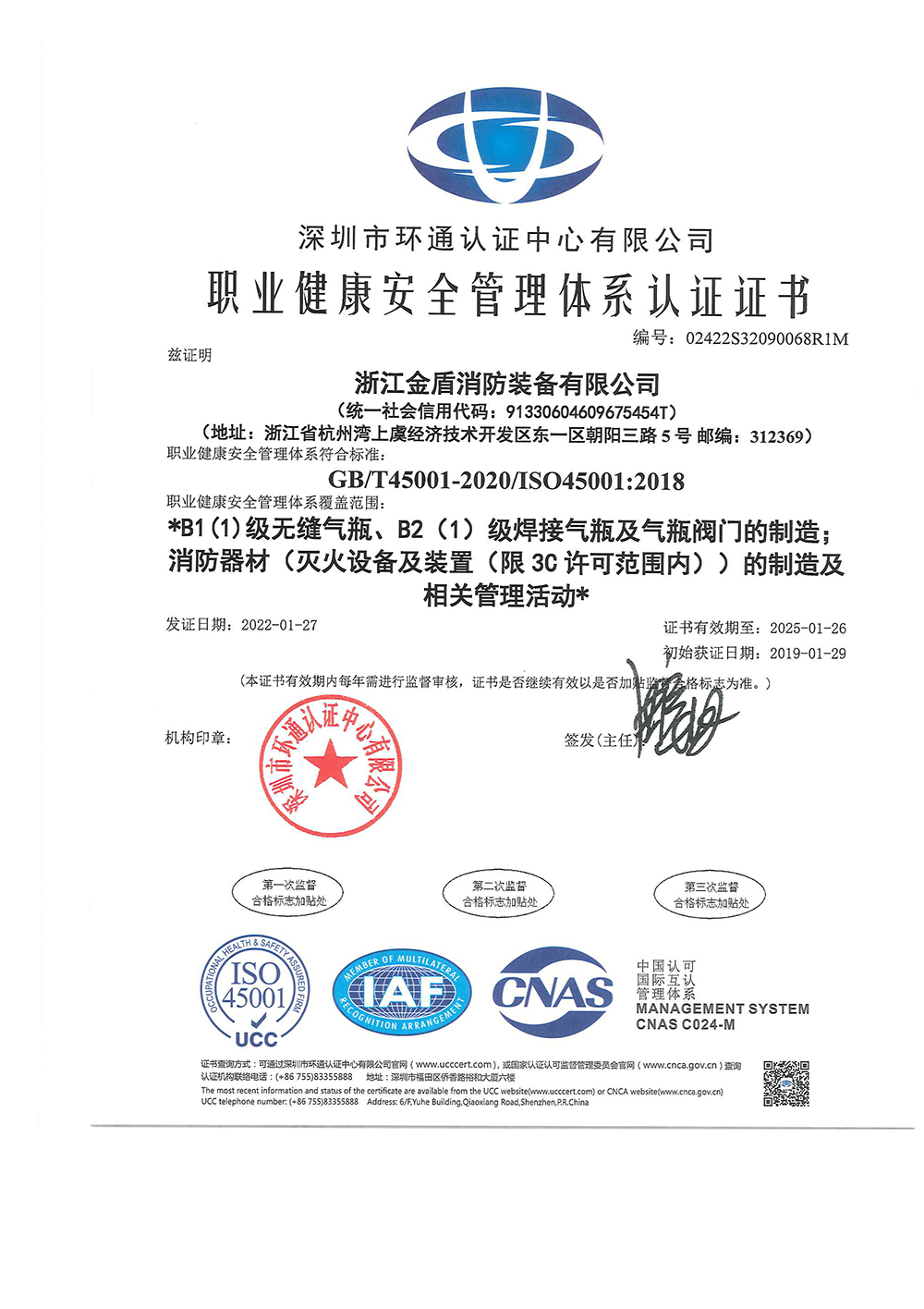 安全管理體系認(rèn)證證書